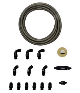 Get the fuel from the tank to your carburettor or EFI system with a FiTech Stainless Steel Fuel Line Kit. These kits have everything you need to plumb a reliable fuel line – stainless steel braided hose fittings, a fuel filter, and an inline check valve to prevent fuel backflow and maintain consistent fuel pressure.