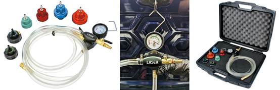 Supplied with a range of current EV-specific cap adaptors—including applications for Fiat, MG, Renault, and Tesla—the kit also integrates seamlessly with Laser’s popular 5614 cooling system pressure test kit cap set. The 9116 is air-operated via a new venturi-style vacuum pump, allowing technicians to draw a vacuum through any Laser Tools screw-on cap, then refill the system under negative pressure.