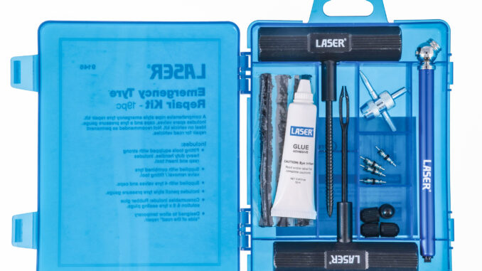 A flat tyre can happen anywhere, and often at the most inconvenient moment. The Laser Tools Emergency Tyre Repair Kit (part number 9146), is designed to provide drivers with the tools needed for a quick, roadside repair – allowing them to get moving again without waiting for breakdown recovery.