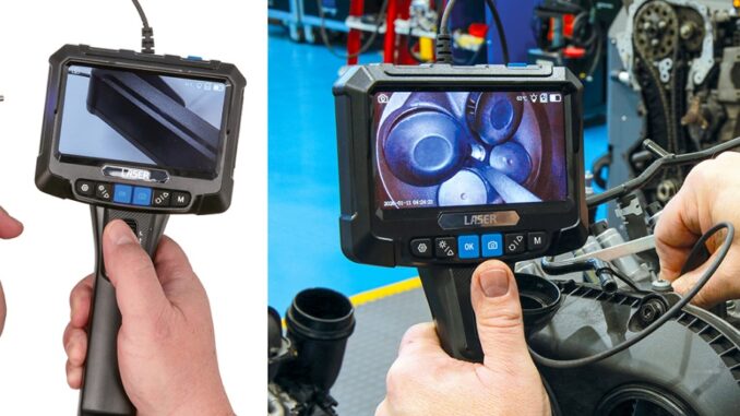 New to the Laser Tools’ range is this Portable Endoscope Camera (part number 9195), a professional-grade inspection tool featuring a 360° swivel lens. Unlike conventional endoscopes that rely on fixed 45° mirrors to see around corners, the 9195’s ultra-flexible, 3.9mm camera head can be precisely manoeuvred, allowing it to look back on itself – ideal for inspecting engine valve heads, tight cavities, and complex mechanical components.