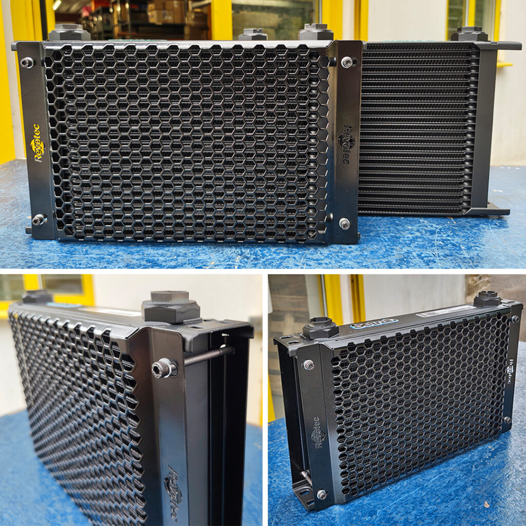 The newly introduced Revotec guard is a well-designed solution to the problem. It is available for oil coolers in sizes from 10 row to 25 row (width 235mm).