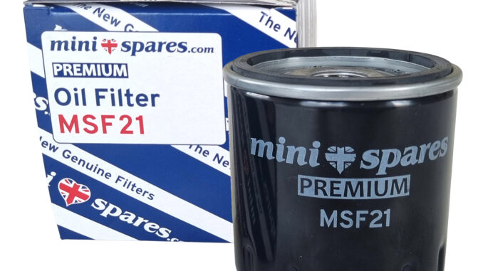 The standard oil filter is MSF166, but this is part number MSF21 – an upgraded version of the usual Mini Spares oil filter.