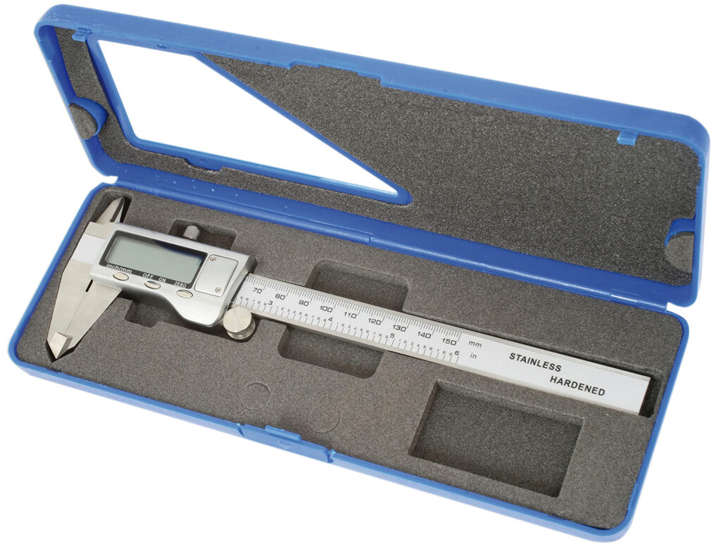 It has all the regular features you would expect of a caliper including an imperial/metric switch, a 0 – 150mm /0in – 6in measurement range and a resolution of 0.01mm. It even comes with LR44 batteries supplied and a tough protective storage case.