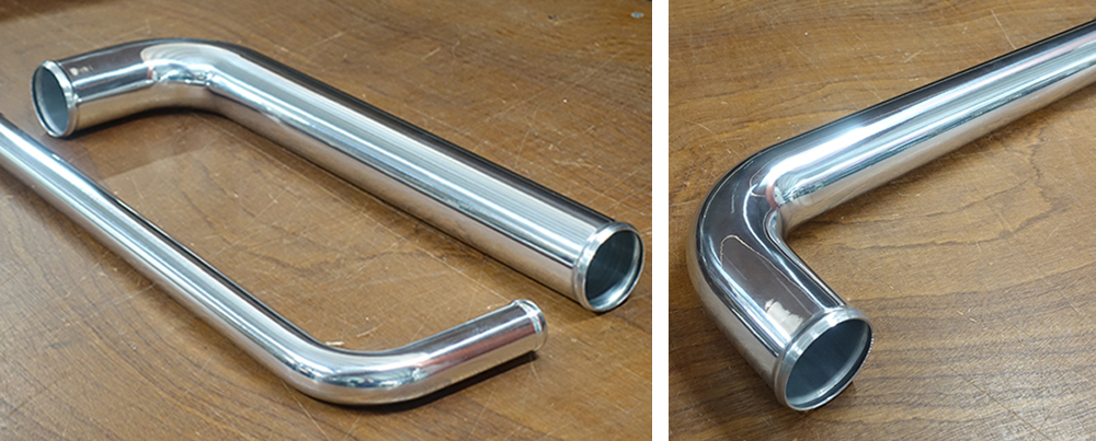 These are useful where you need one of the legs on the bend to have extra length. Made from 6063 grade aluminium with a roll bead at both ends for secure hose fitment. Go to – L Shape 90 Degree Aluminium Bends.