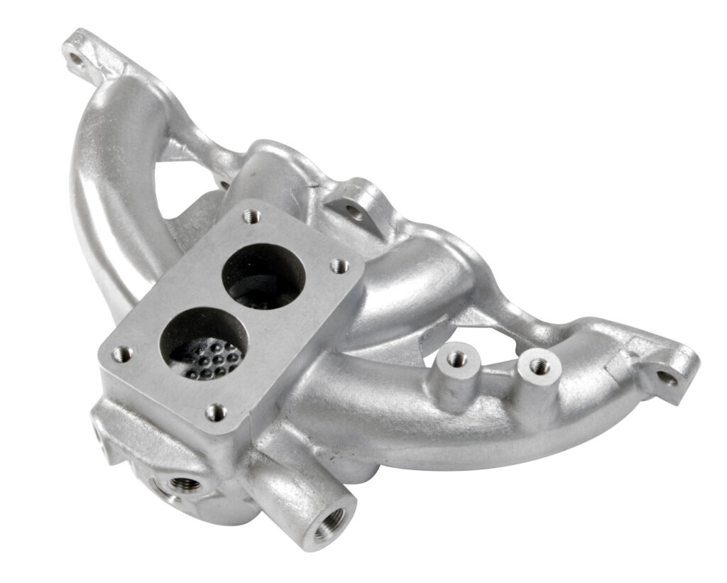The Webcon manifold features threaded ports to accept the original Ford connectors and switches, a hotspot with increased surface area for better carb heating and mounting posts for the linkage mechanism.