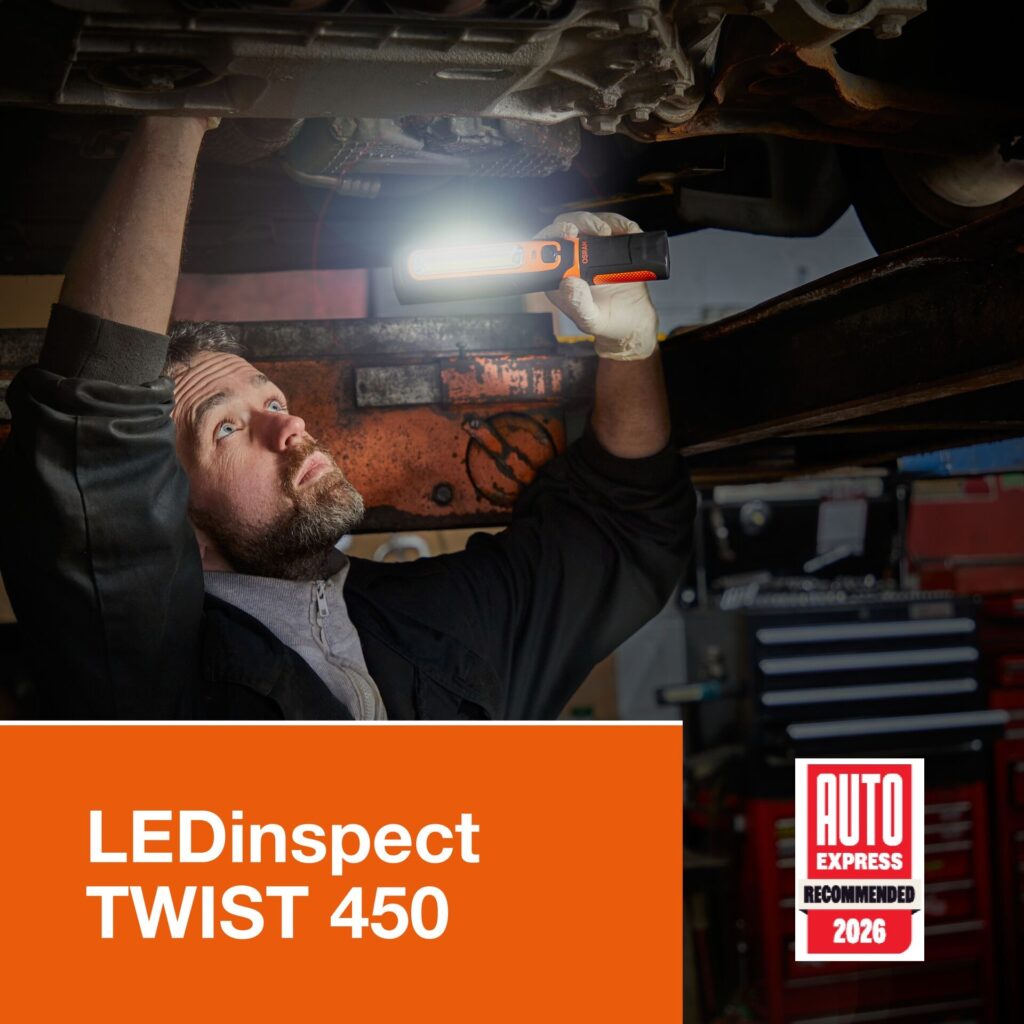 SNIPPETS 2 …….OSRAM’s LEDinspect TWIST 450, has been awarded 4 out of 5 stars in the Auto Express workshop lamps test, coming third in the test and being awarded Recommended by the magazine.