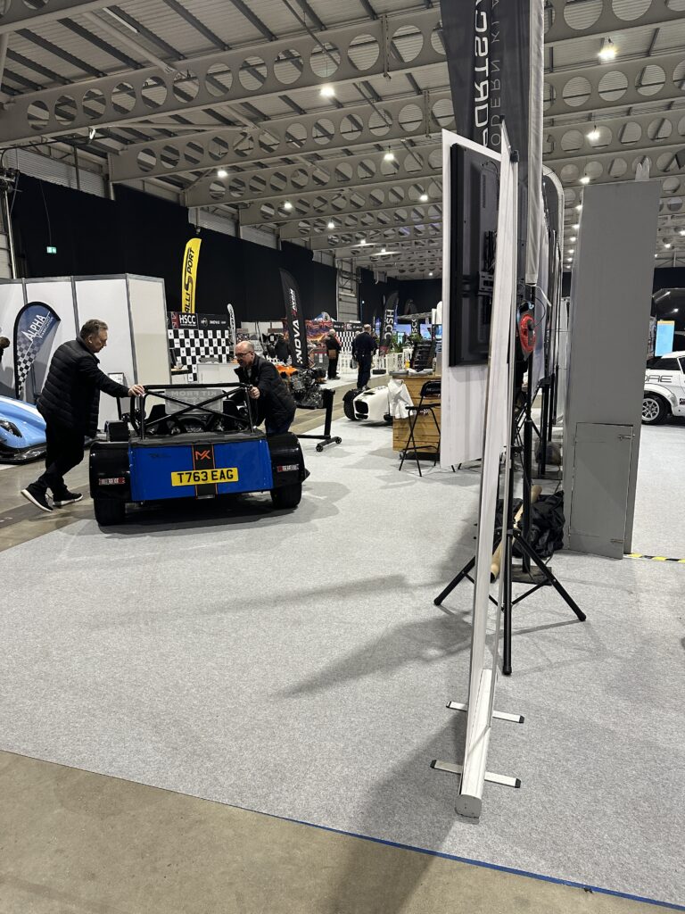 MK Sportscars adding the finishing ‘just so’ touches to their stand before the show opened on Friday morning