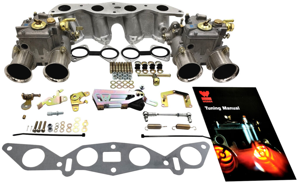 The kit includes twin 45 DCOEs, LP1000 linkage kit, inlet manifold and hardware.